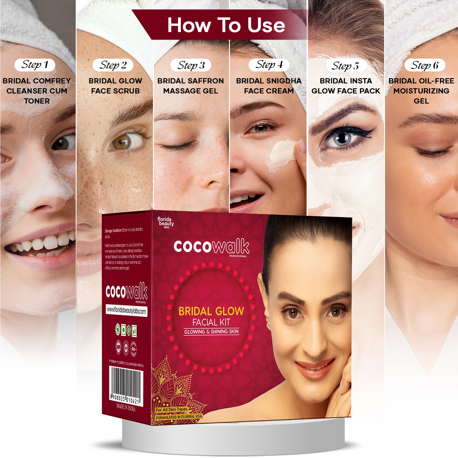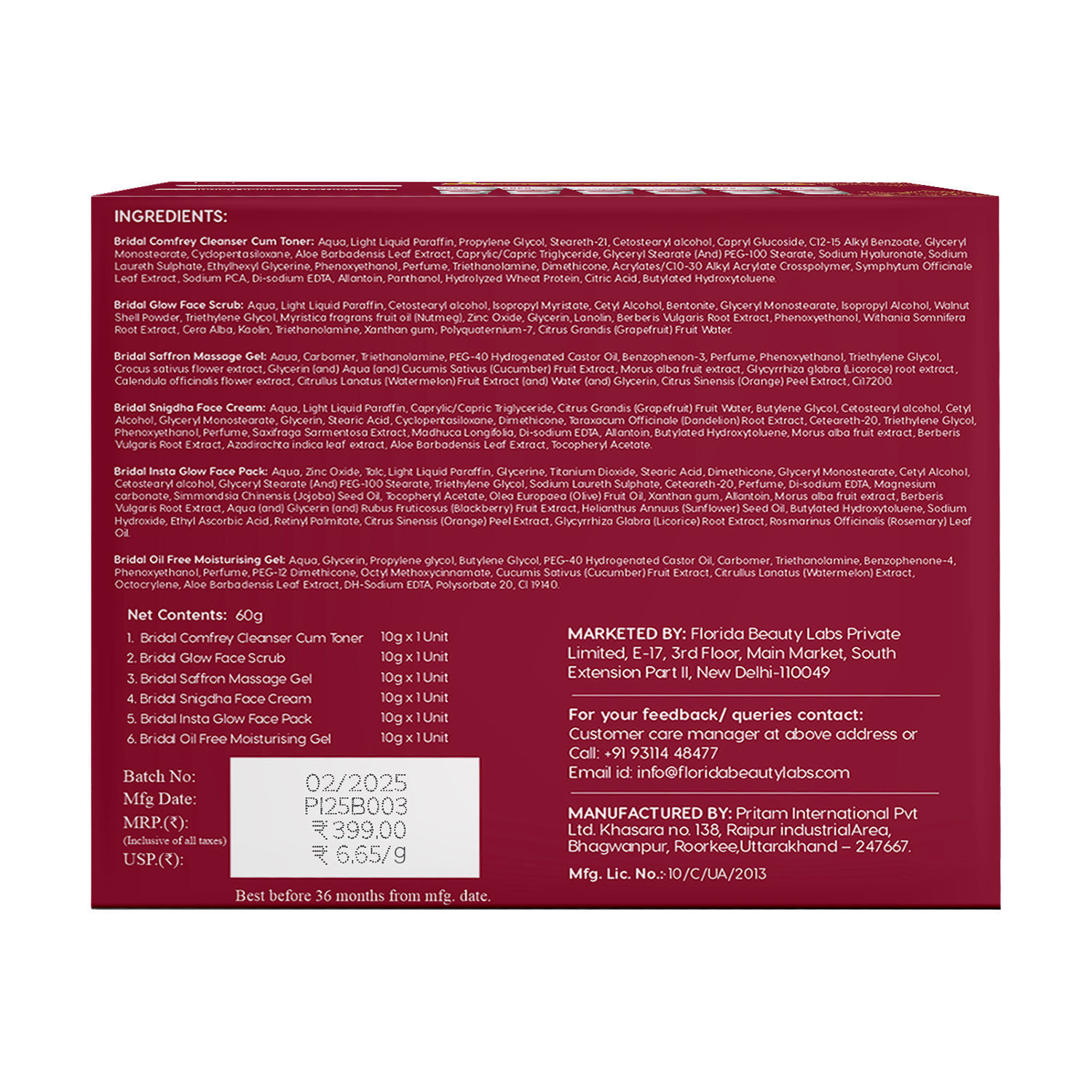 ✔ Bridal Facial Kit: Deep hydration, reduces fine lines, and enhances skin elasticity.